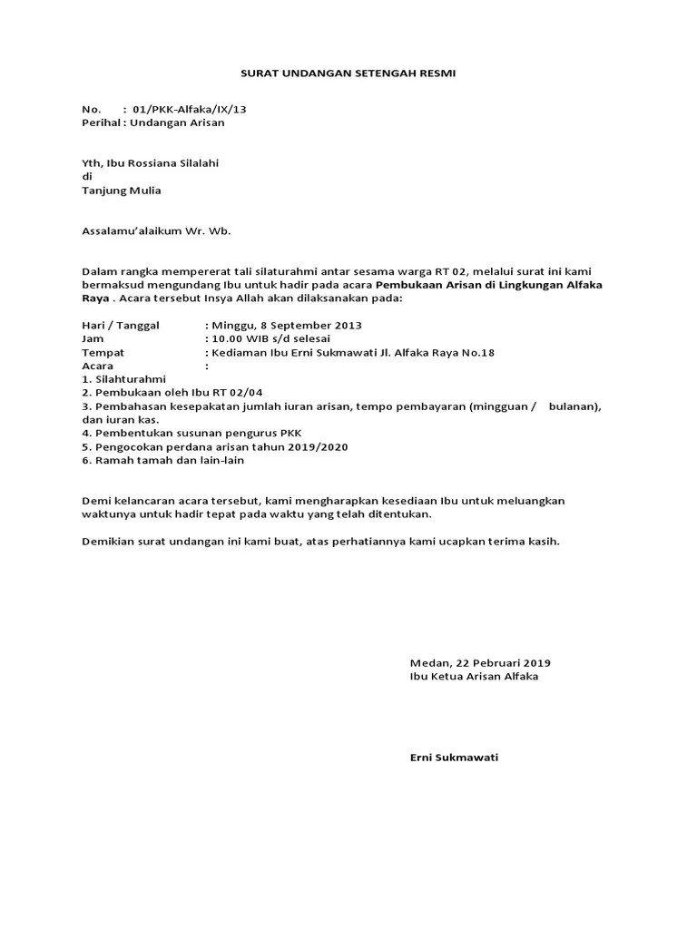 Menulis Surat Undangan Resmi Setengah Resmi Dan Tidak Resmi from 1.bp.blogspot.com Dalam pembuatannya, surat ini memiliki beberapa hal yang harus diperhatikan terkait struktur surat tersebut. Stempel dan tanda tangan menjadi bukti bahwasanya undangan tersebut dikirim oleh pihak resmi yang bersangkutan sebagai penguat kebenaran setelah membaca informasi di atas, maka tentu lebih mudah dalam membuat surat resmi mulai dari sekarang. Undangan tidak resmi merupakan sebuah undangan dari individu sebagai penggunaan pribadi mereka. Bunga selalu identik dengan kecantikan dan keindahan. Kepala atau kop surat yang terdiri dari pembuka, isi, dan penutup surat yang berisi salam penutup, jabatan, tanda tangan, dan. Bagian ini biasanya terbuat dari urugan tanah, pasangan batu kali, dan bronjong atau beton. Undangan suatu hajat, undangana selametan, undangan pernikahan, undangan khitanan dan sebagainya. Adapun contoh dari surat undangan tidak resmi :